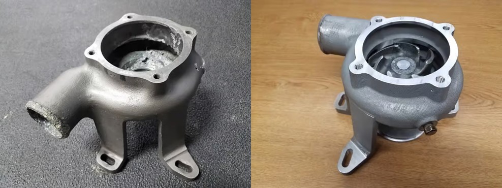 Por ejemplo, para poner en marcha un carro de carreras de 1952, el Cummins Diesel Special n.° 28, se necesitaba una nueva bomba de agua. El diseño original era único y específico para este auto, lo que significaba que ninguna pieza de repuesto le quedaba. Los ingenieros de Cummins recurrieron a la impresión 3D Systems. La nueva bomba de agua se imprimió en acero inoxidable 316L en tres días. La carcasa encajó a la perfección con los demás componentes de la bomba y ofreció un rendimiento impecable durante las seis carreras del auto.