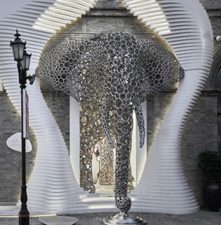 - Esculturas urbanas y mobiliario con geometrías orgánicas y superficies pulidas.